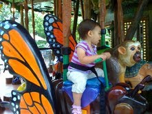 Sitting on a plaster alligator at the zoo: